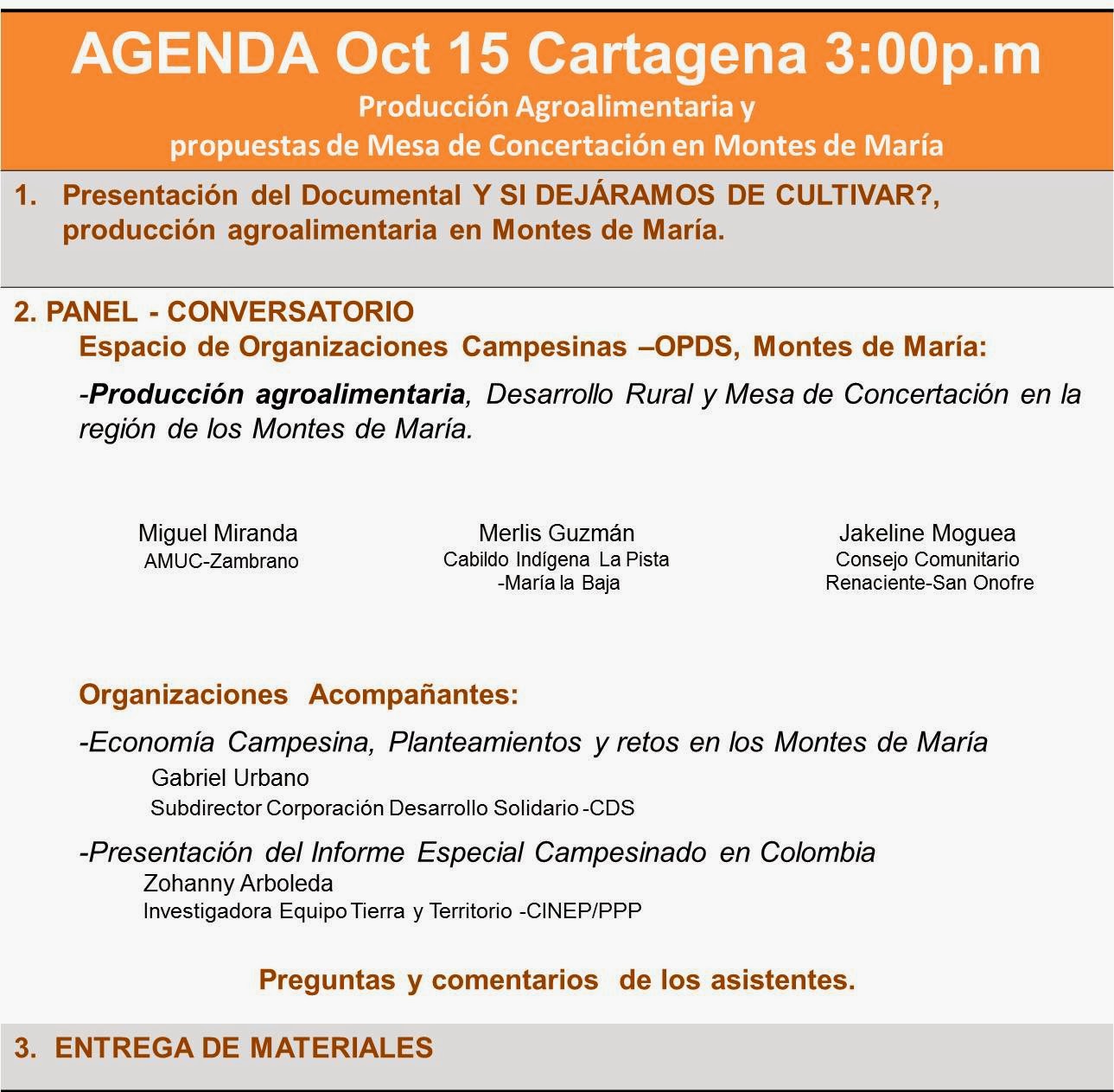 Encuentro para la articulación de acciones regionales por el derecho a la tierra y el territorio en Montes de María